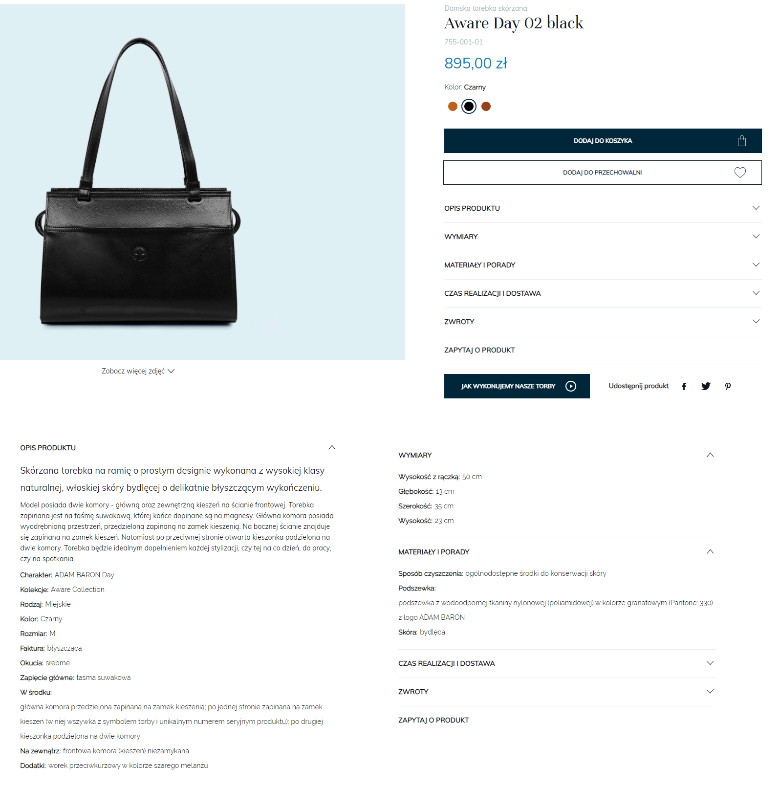 Jak wygląda to w praktyce? Karta produktowa naszego Klienta, galanterii skórzanej ADAM BARON, zawiera wszystkie niezbędne elementy, których klient poszukuje na etapie FMOT.