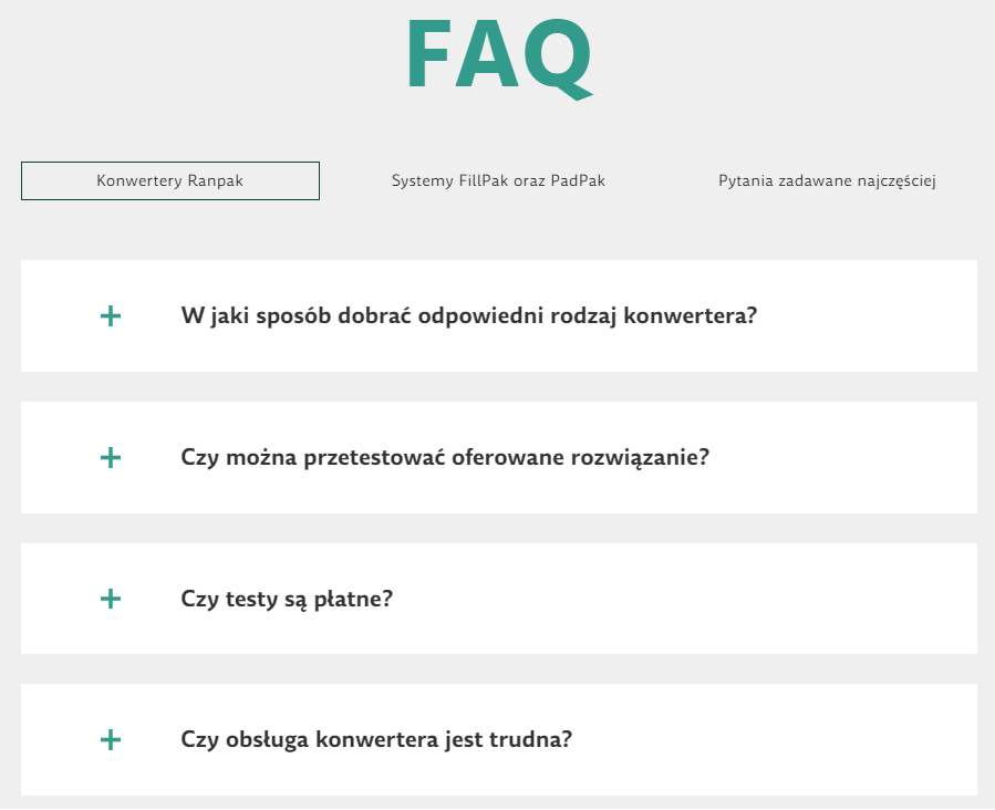 W tym kontekście, nasz Klient, Marka Treeco, postawił m.in. na sekcję FAQ, dostępnej w ramach witryny internetowej. Narzędzia takie jak FAQ zmniejszają liczbę powtarzających się pytań kierowanych do zespołu obsługi klienta, co pozwala skupić się na innych kwestiach związanych z rozwojem biznesu.