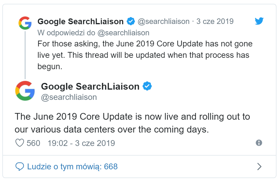 June 2019 Core Update – Najnowsza aktualizacja Google