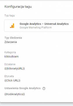 d. Etykieta – nasza utworzona zmienna {{kliknietyURL}}