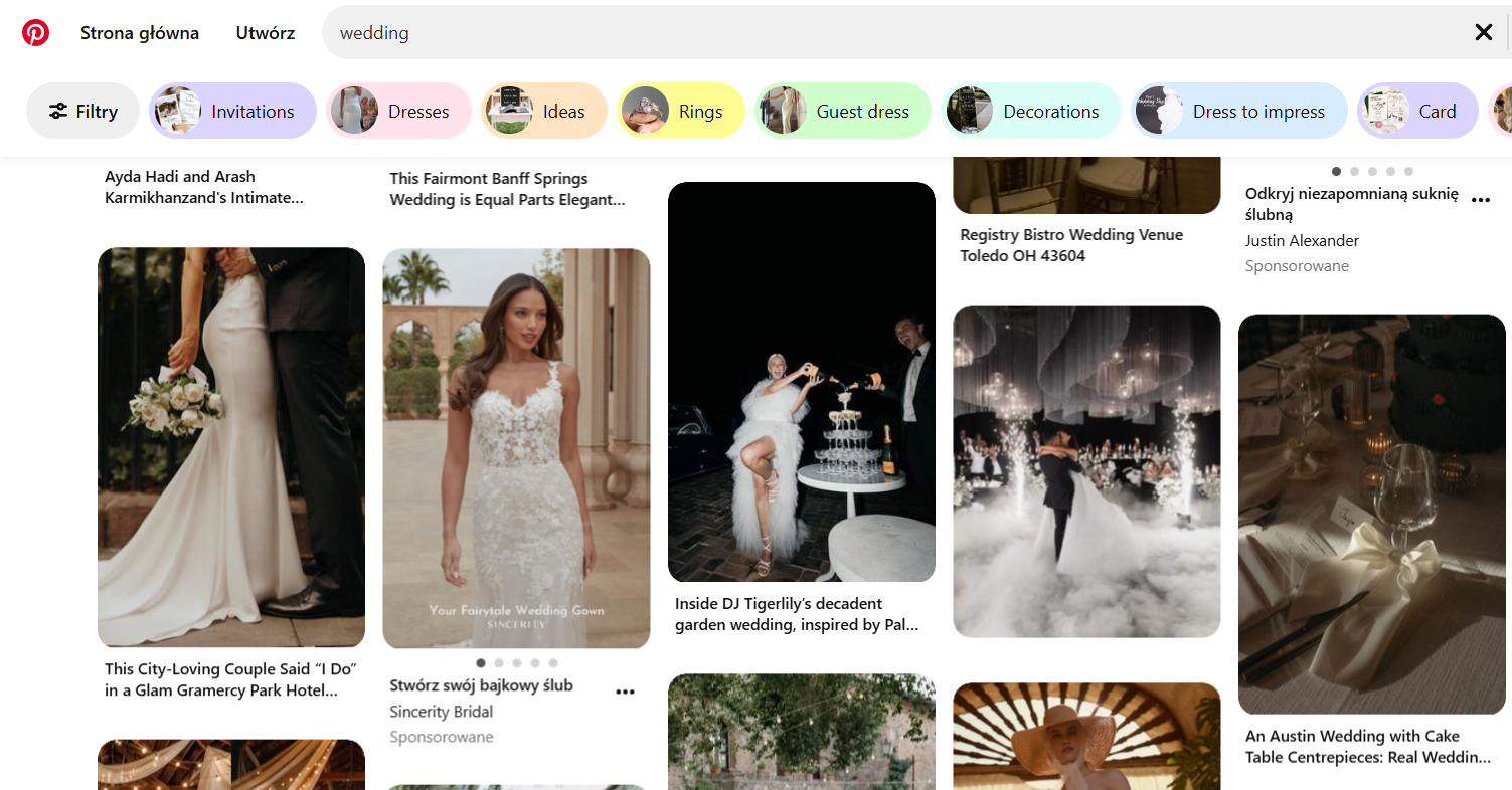 - Wizualny storytelling – marki mogą przyciągać uwagę dzięki atrakcyjnym pinom przedstawiającym inspiracje, pomysły, poradniki i style życia.