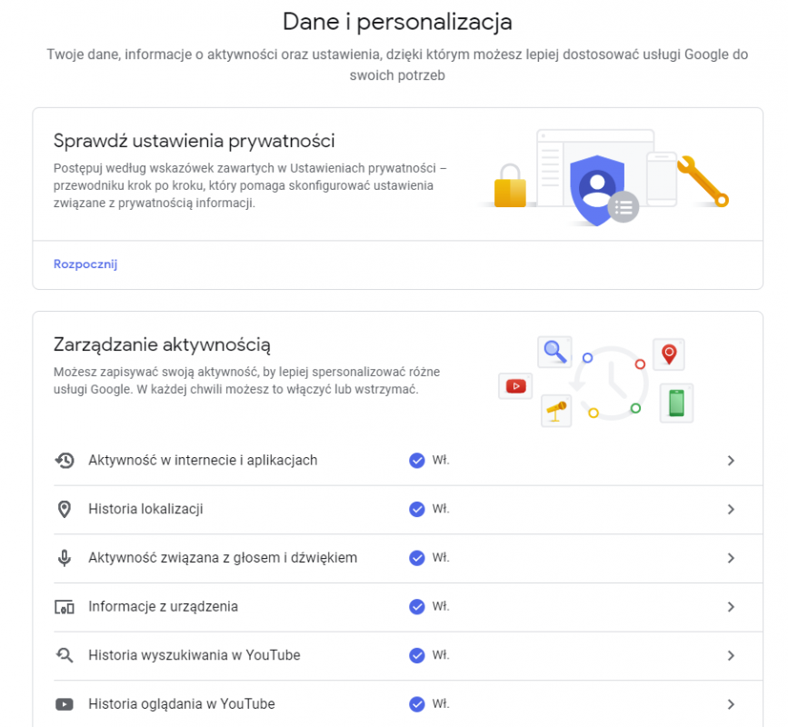 Personalizacja w oparciu o inne usługi Google: