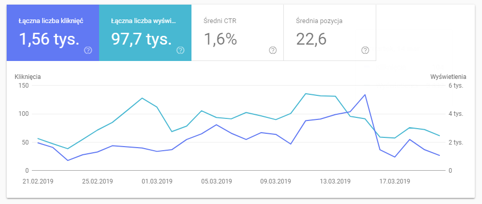 Jak zatem możesz sprawdzić, czy nasze działania są skuteczne? Skorzystaj z raportów skuteczności w Google Search Console: