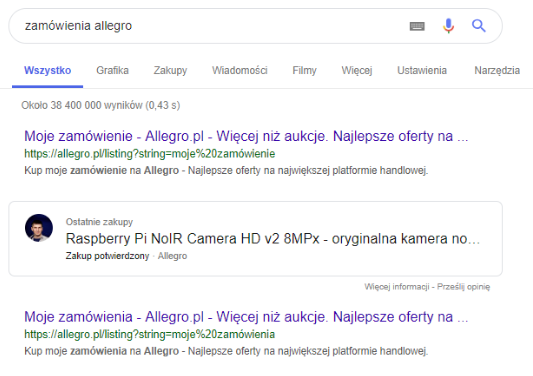 Lista usług powiązanych z Google jest długa. Integracja wszystkich w obrębie jednego konta Google pozwala wyszukiwarce prezentować wyniki związane bezpośrednio z nimi.