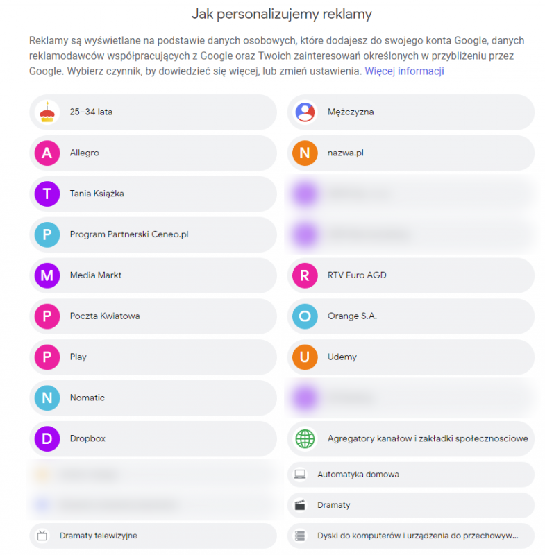 Jeżeli chcesz przekonać się jak sprofilowała cię wyszukiwarka Google – zajrzyj do ustawień swojego konta dostępnych pod adresem: https://adssettings.google.com/authenticated.