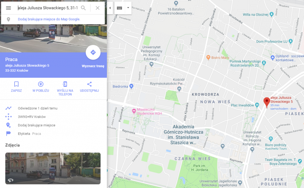Na podstawie historii, Google może określić lokalizację Twojego domu lub mieszkania, miejsca pracy czy ostatniej wizyty w jednej z galerii handlowych: