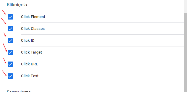 Najlepiej jeżeli w liście zaznaczymy wszystkie rodzaje kliknięć.