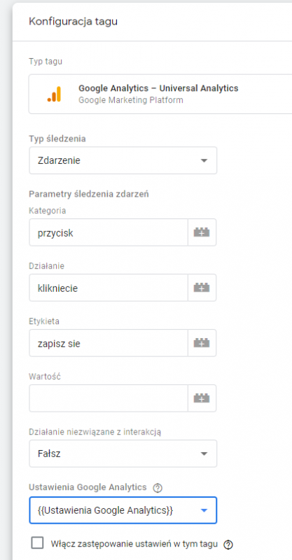 W tym celu należy utworzyć nowy tag. Tak więc w konfiguracji wybieramy: