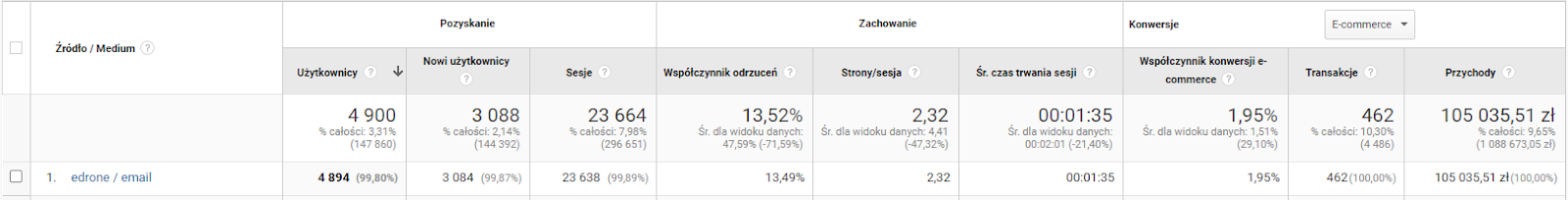 Przychody z zastosowanych narzędzi do automatyzacji marketingu w tym okresie to 105 035,51 zł.