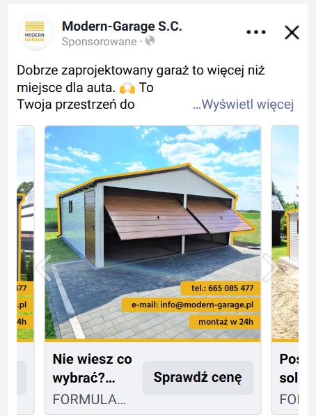 Dzięki tej strategii skutecznie dotarliśmy do grupy docelowej – osób poszukujących trwałych i estetycznych rozwiązań garażowych. Jasny i konkretny przekaz zwiększył zaangażowanie odbiorców oraz poprawił efektywność kampanii, co przełożyło się na lepsze wyniki reklamowe.