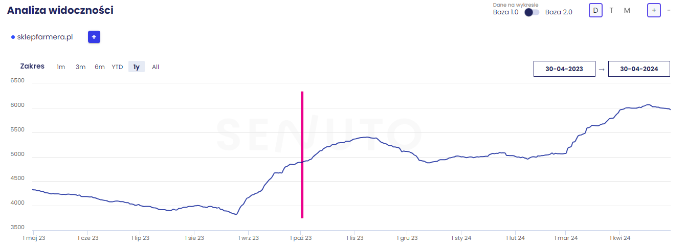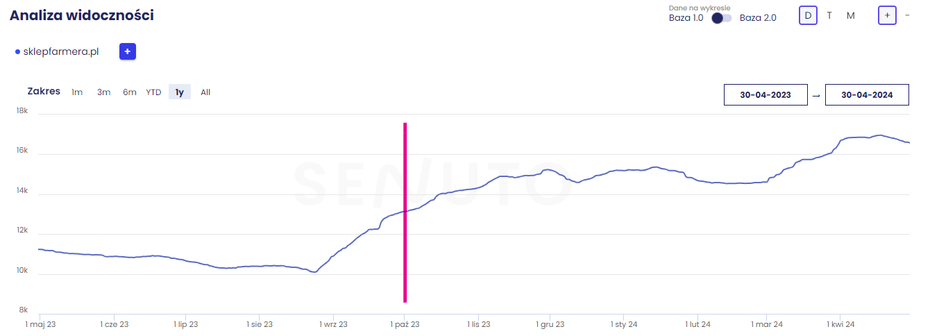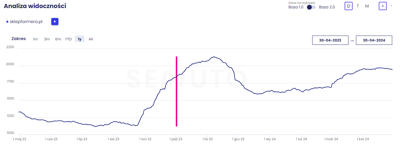 Widoczność fraz w TOP 50 SklepFarmera.pl (30.04.2023 – 30.04.2024)
