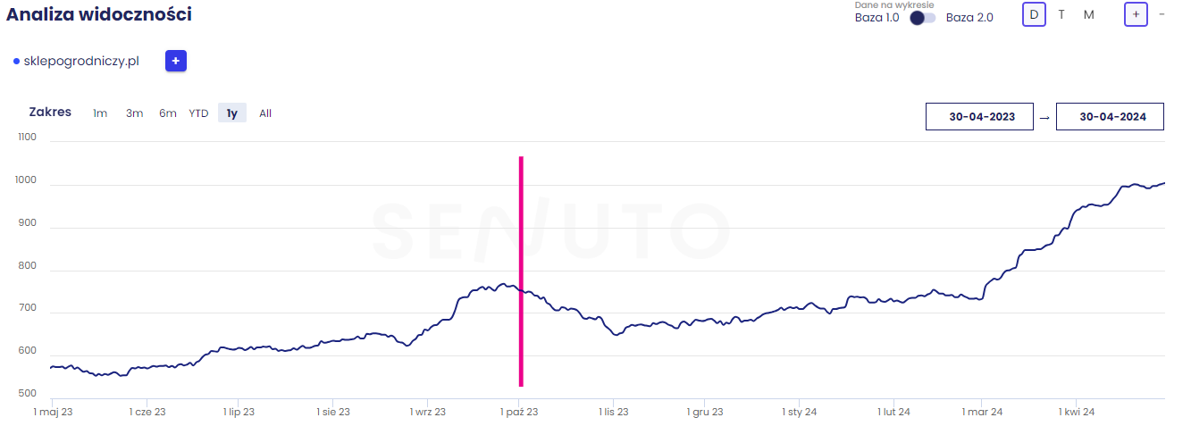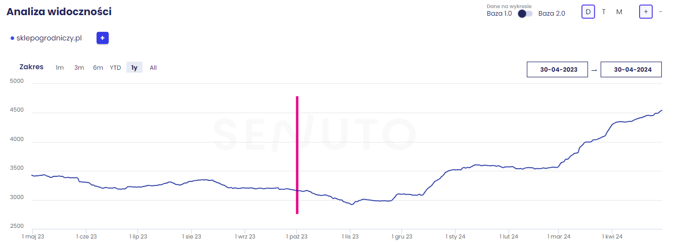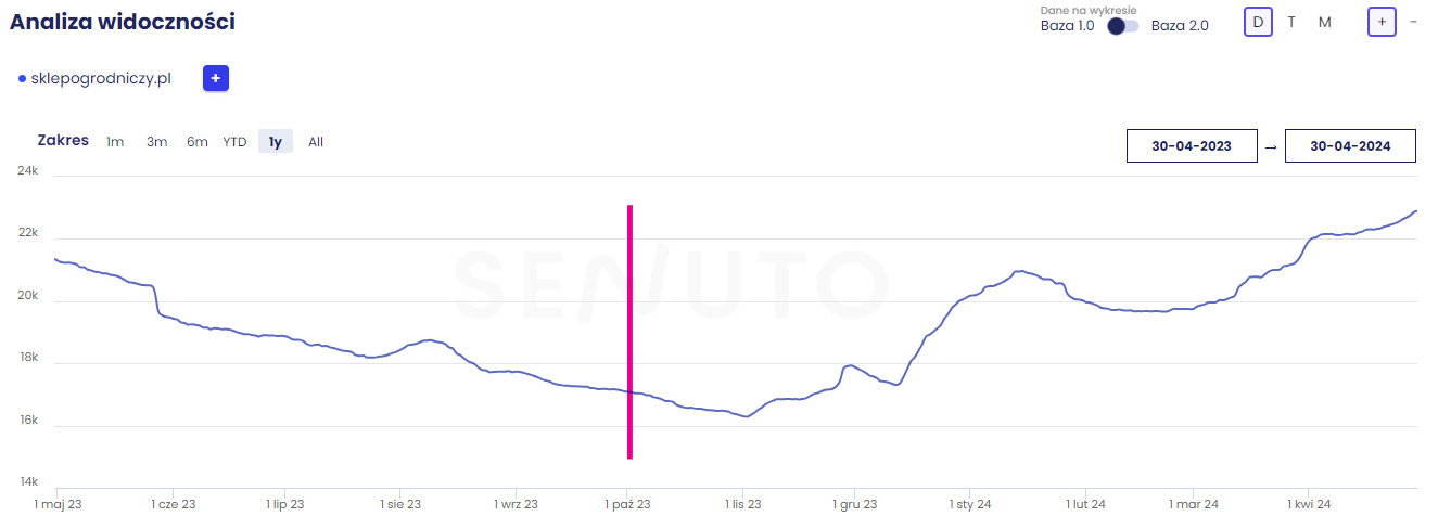 Widoczność fraz w TOP 50 SklepOgrodniczy.pl (30.04.2023 – 30.04.2024)