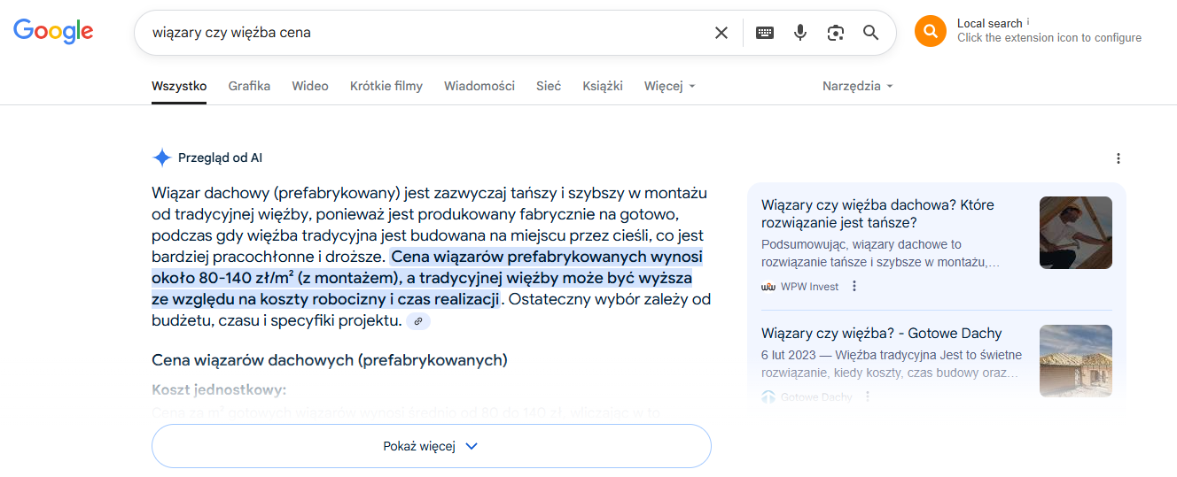 • dalszym zwiększaniu widoczności strony w tradycyjnych wynikach wyszukiwania oraz w  AIO,